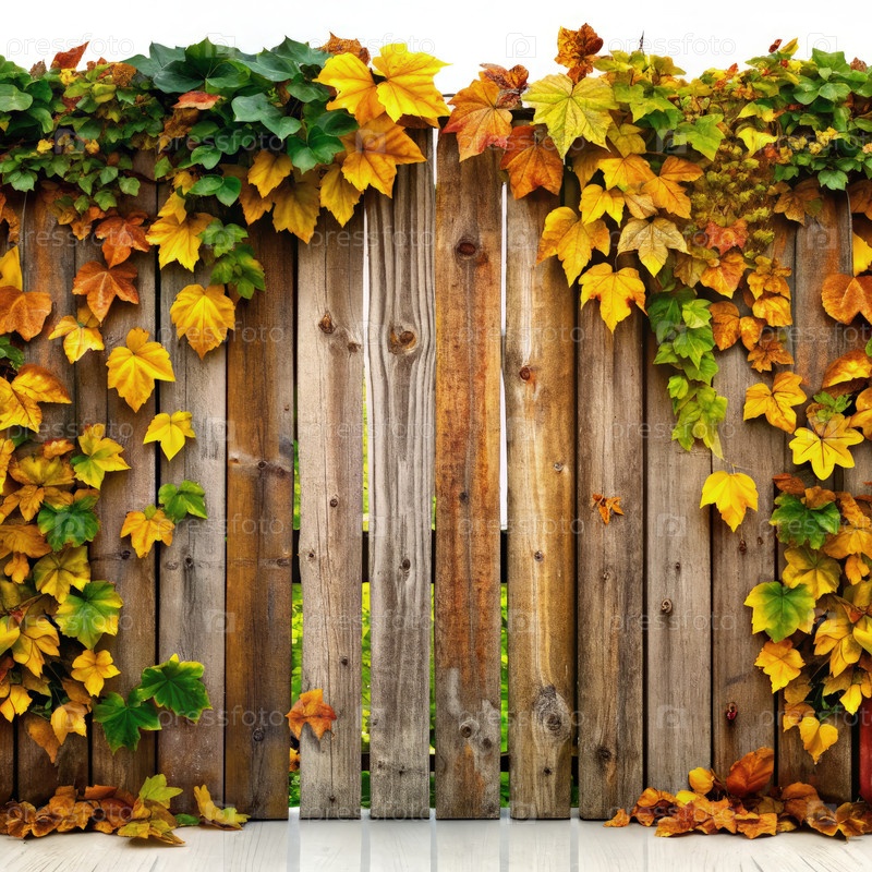 Деревянные ограждения, выросшие осенними листьями