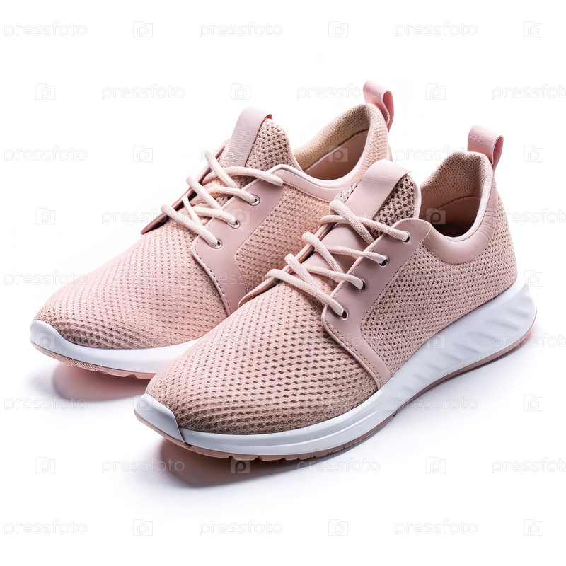 Пара розовых спортивных туфель на белом фоне