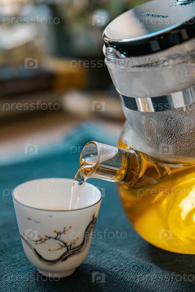 Восхищение элегантным процессом заваривания чая, с традиционным чайником и изысканной чашкой
