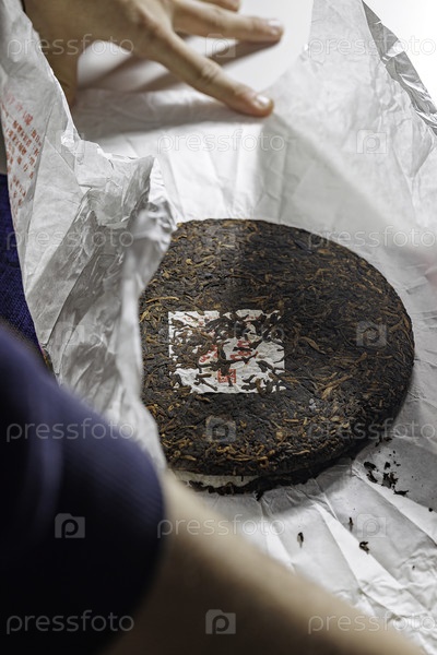 Уникальный чайный торт тонко завернут в традиционную бумагу, чтобы обеспечить свежесть и вкус