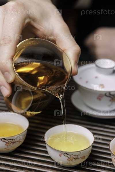 Церемония чая с традиционными китайскими чайными кружками подчеркивает мастерство и гостеприимство