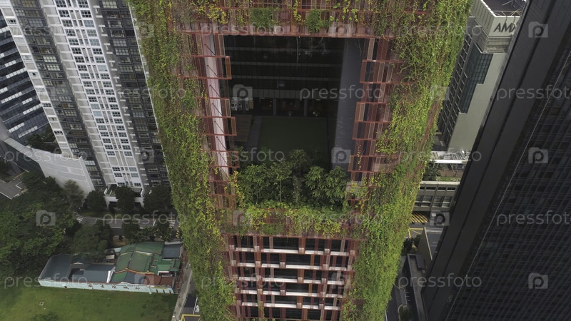 Гостиницы в Сингапуре с красивым крупным планом отеля Oasia.Снимать.Зеленая башня в самом сердце густонаселенного Центрального делового района Сингапура