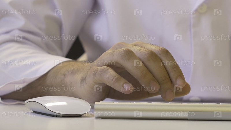 Мужская рука или мужской офисный работник, печатающий на клавиатуре f