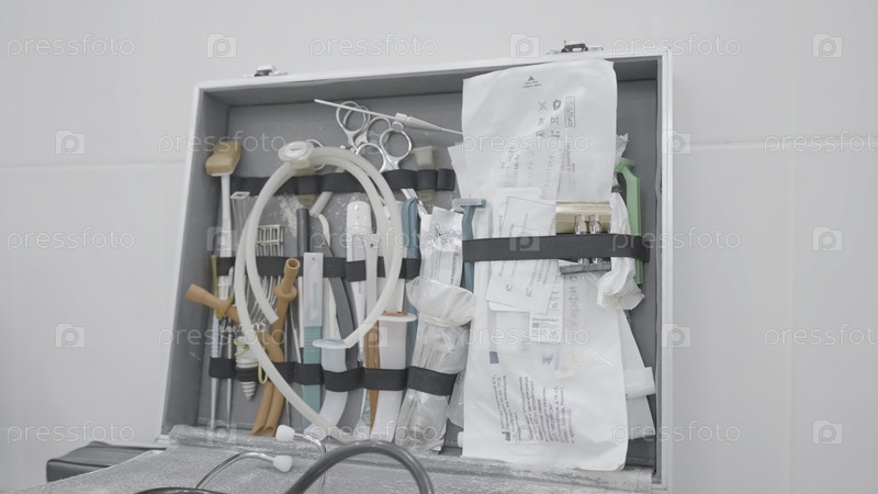 Хирургические инструменты и препараты. пожалуйста. чемодан первой помощи. чемодан с хирургическими инструментами, трубками и лекарствами для операции