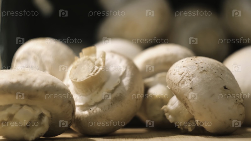 Свежие грибы для приготовления пищи. концепция. свежие белые грибы для приготовления блюда из грибов. сырые грибы champignons