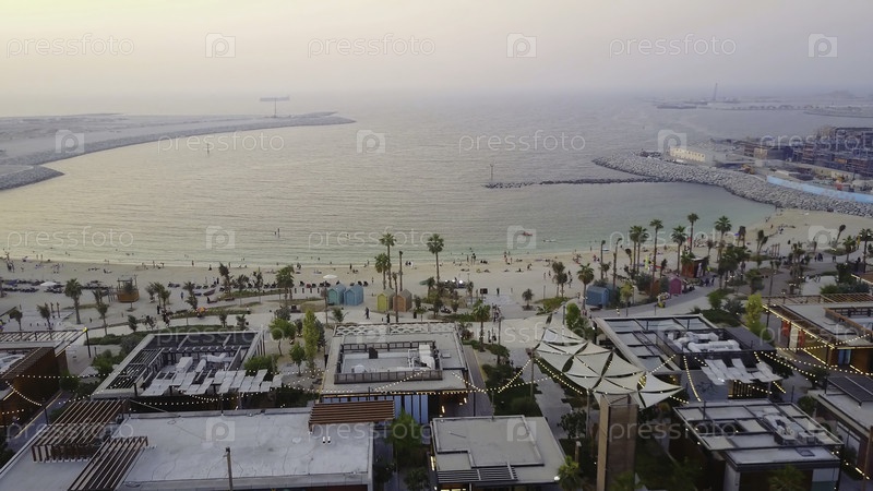 Зелёный оазис. Вид с вершины пляжа и Персидского залива. Вид на красивое побережье в Дубае