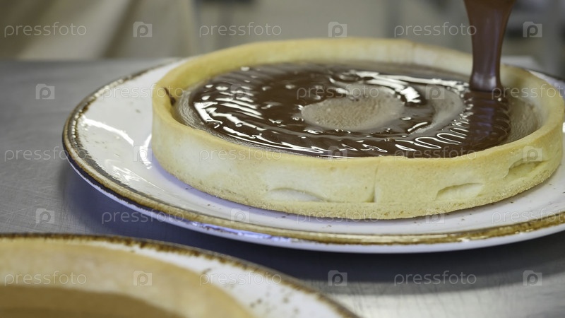 Шоколад вылил на кусок вкусных свежевыпеченных пирогов