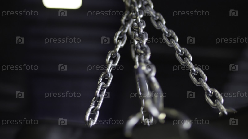 Удар по сумке висит в тренажерном зале на цепях