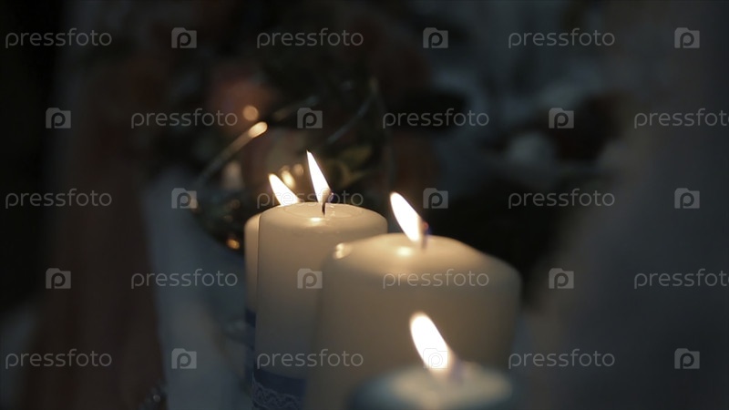 Зажигание свечи спичкой, чтобы получить романтическое освещение.Удивительные андрейлы и подсвечники на столе.Оставайтесь в свете среди мирной религиозной церемонии HD