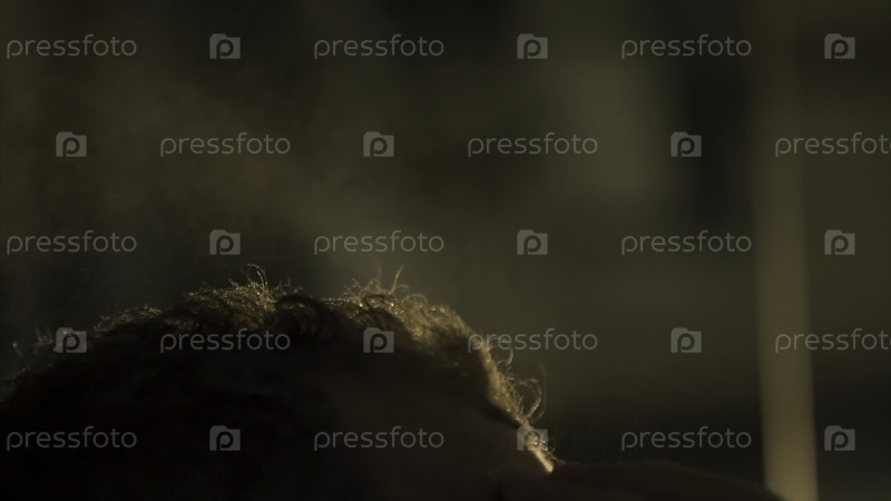 Парикмахер распыляет воду на волосы клиента в замедленном режиме. рама. парикмахер распыляет воду и гребёт влажные волосы. мужская прическа в салоне. мужская стрижка. закрыть парикмахерскую. стиль парикмахера в парикмахере. мягкий трюк
