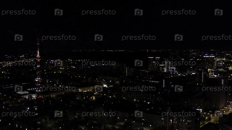 Вид на город ночью с вспышками фейерверков. резервные кадры. Темный город со вспышками красочных фейерверков издалека. Панорама ночного города для отдыха с фейерверком