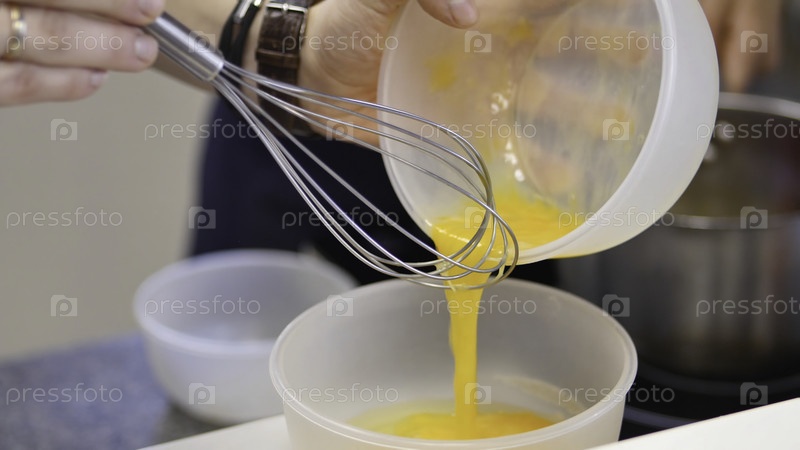 Сбитые яичные желтки с сахаром в стеклянной таре. избитные яйцеклетки в тарелке виски. яичный желток
