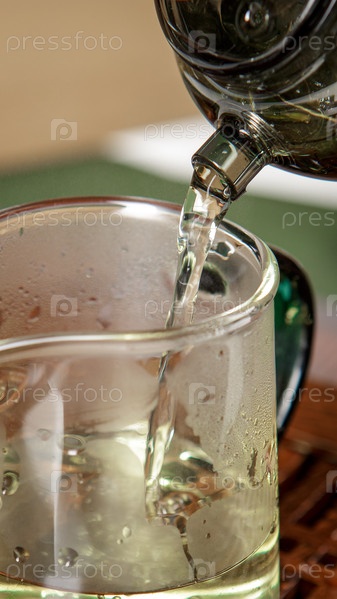 Налив высокую чашку горячего чая в красиво выполненную стеклянную кружку улучшает опыт