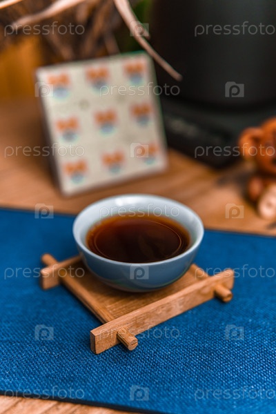 Наслаждайтесь уютной чашечкой чая, продуманно расположенной на красивом деревянном подставке, восхитительной
