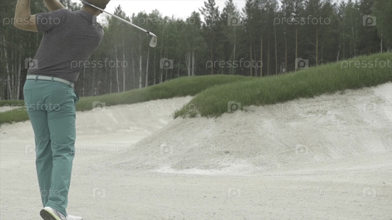 Гольф-игрок играет в мяч с клюшкой на красивом поле для гольфа.Голфист стреляет по феервейу к клубу.Мужчина врезался в водителя на golf-поле под солнцем.Профессиональный голф-игрок f