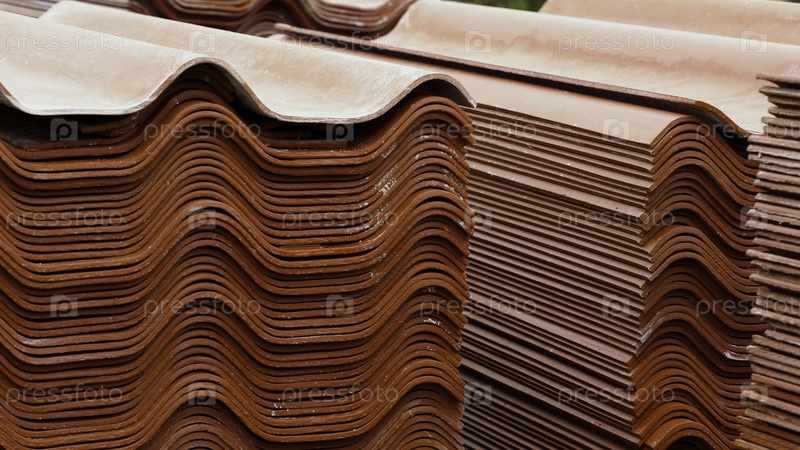 Куча красных черепичных крыш, сырье для промышленного строительства. резервные кадры. хранилище с красной плитой
