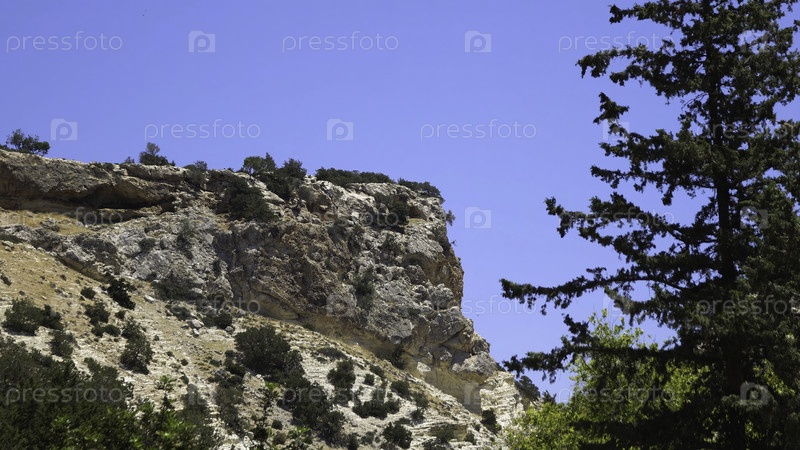 Скалистые горы.Каменистая скала на фоне синего неба.Природный фон