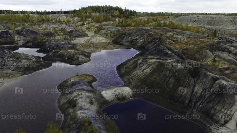 Маленькое озеро, вид сверху. кадры. небольшое озеро в горной местности. панорамный вид на скалистые вершины гор вокруг озера