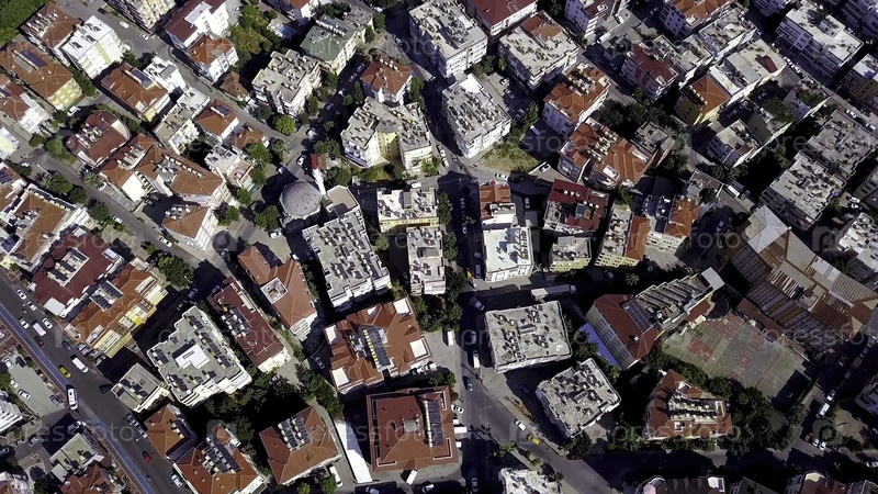 Красивые дома с красными крышами расположены рядом друг с другом в ландшафте города