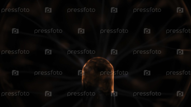 Энергия плазменной шариковой лампы, концепция светящейся стеклянной сферы для рук, электричество, наука и физика, крупный план
