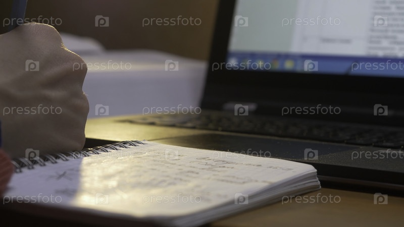 Молодой человек сидит за столом и пишет в блокноте