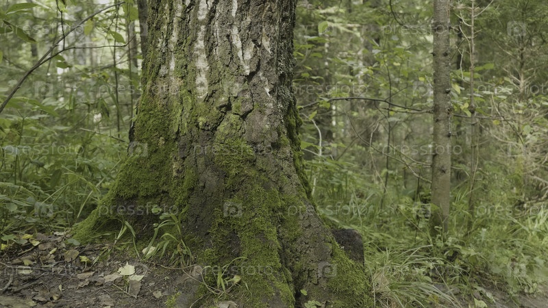 Старые деревья с лишайниками и мхом в лесу.Лесные деревья - это природная зеленая древесина.Мох на дереве в лесу