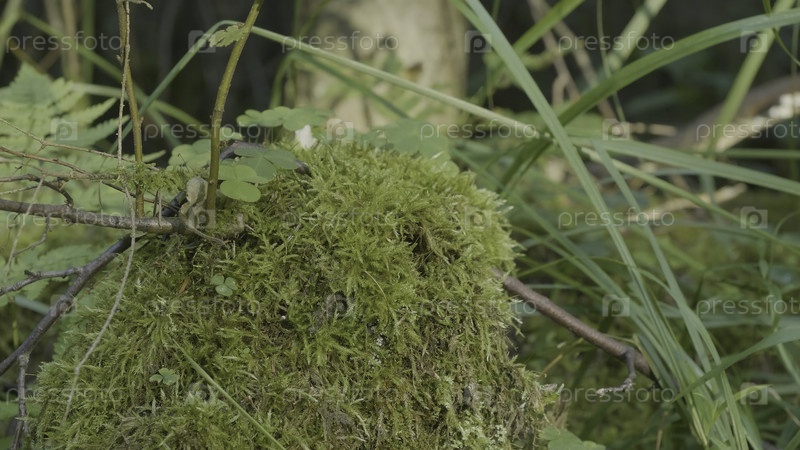 Мох на конопе в лесу.Старая древесина с мохом в лесу.Купол зеленого моха пихта сосна хвойный лесной парк дерево корневая кора