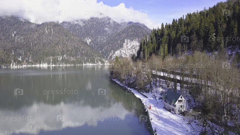 Прекрасная погода зимой, чистый воздух, дом на озере