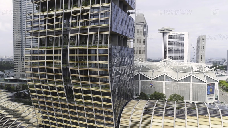 Сингапурский горизонт.Снимать.Вид на небоскреб в Сингапуре.Современные небоскребы из китайского квартала