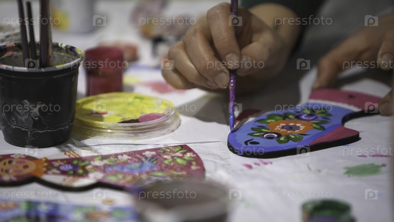 Закройте руки, рисуя плоскую фигуру в мастерской. Клип. Изготовление традиционного русского орнамента с помощью красочных красок на плоских игрушках, образе жизни, увлечениях и художественной концепции