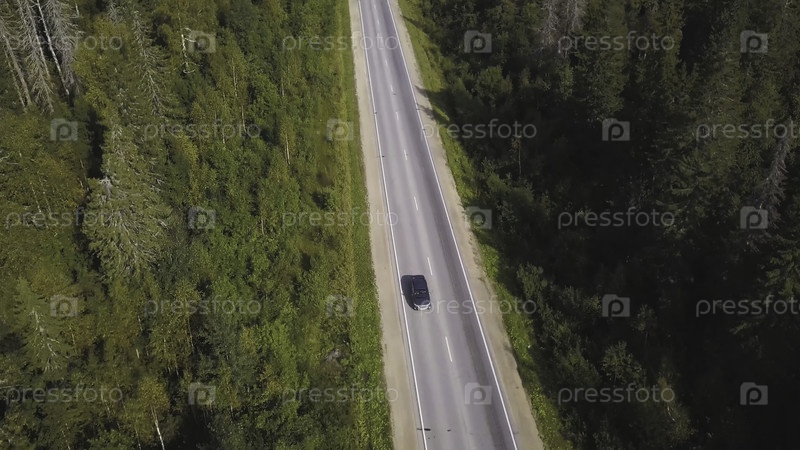 Летание над красивыми лесными деревьями и дорогой. Вид с воздуха. Автомобиль на извилистой дороге в горах. Авиафотосъемка. Вид пейзажа. Вид с воздуха, пролетающий через старую лесною дорогу