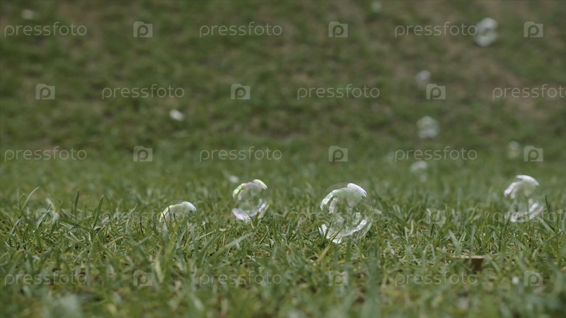 Счастливая, улыбающаяся девочка играет с гигантскими мыльными пузырями