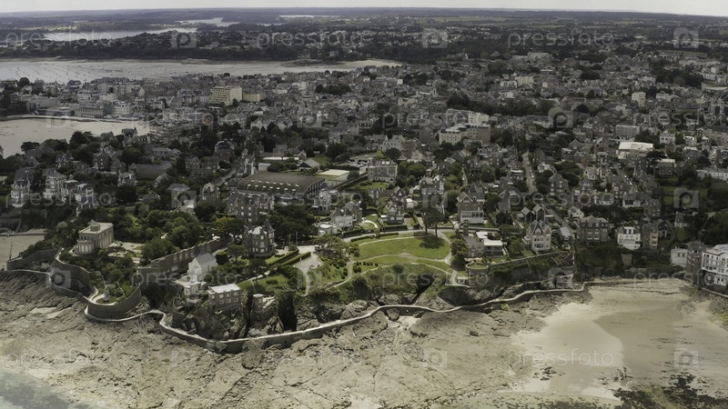 Потрясающий воздушный вид на прибрежный большой город с белыми домами и коттеджами, расположенными недалеко от пляжа