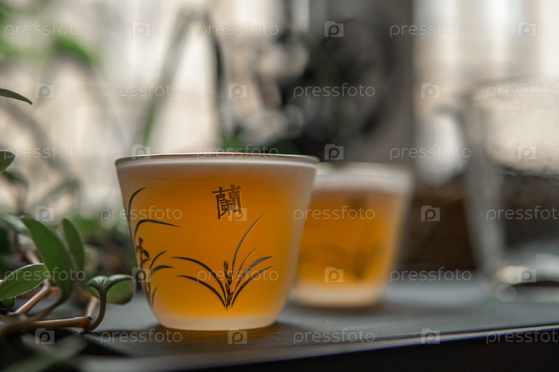 Наслаждайтесь традиционными кружками травяного чая, красиво освещенных естественным светом для комфорта