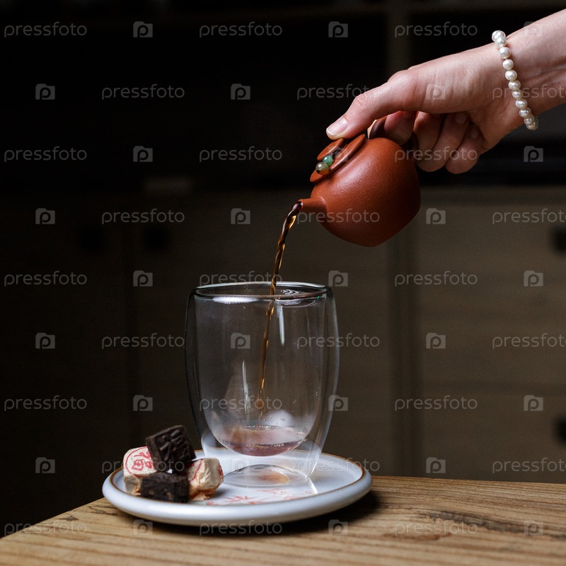 Спокойный момент, красиво захватывающий мастерство наливания чая, дополненное восхитительными лакомствами на стороне