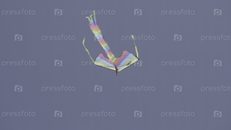 Цвета воздушного змея в голубом небе, красочный воздушный змей, летящий на ветре