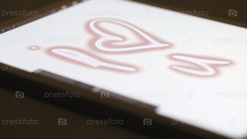 Выключение женщины, пишущей на планшете. Концепция. Художник пишет: Я люблю тебя на планшете. Современное рисование на планшете со стилусом