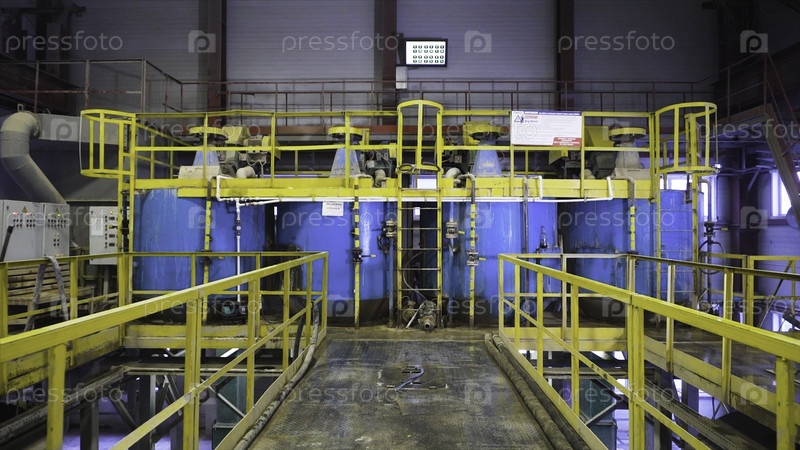 котлы сырьевых материалов на заводе. резервные кадры. Огромные котельные для хранения или смешивания сырья на заводе. Внутри современной фабрики по производству сырья