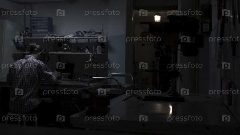 Близкий сварный металл со сварочной машиной, синие искры летящие в стороны, вид сверху