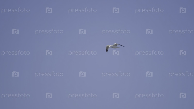 Полет чайки против голубого неба. давай. красивая белая чайка парит в чистом небе. чайки летают на фоне синего неба