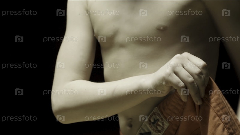 Мальчик в красном кимоно для дзюдо.Мальчик носит красное кимоно при подготовке к тренировкам или спаррингу