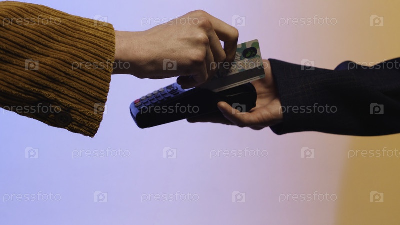 Закрытие клиента, оплачивающего кредитной картой. Сток. Оплата банковским переводом на цветном фоне