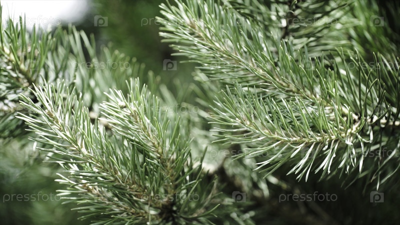 Зеленые колючие ветви мехового дерева или сосны. Прекрасные ветки пихты. Закройте его. Яркие вечнозелёные свежие иглы зеленого сосна. Новые иглы спермы, хвойные