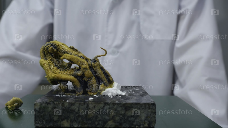 Химик или медицинский ученый добавляет огонь в насильственную химическую реакцию