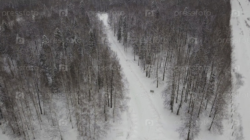 Вид с воздуха снежных сосновых деревьев и слегка извилистых ручьев. Вид с воздуха зимнего леса, покрытого снегом. Замороженный зимний лес. Вид с воздуха заснеженного пейзажа