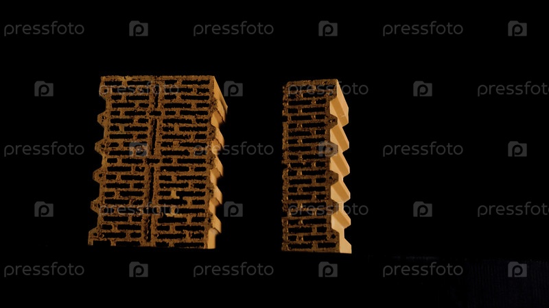 Закройте два красных кирпича, движущихся на черном фоне, дизайн и концепцию материалов