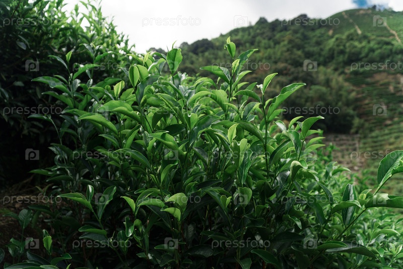 Плодородные и яркие плантации зеленого чая процветают в потрясающем живописном ландшафте