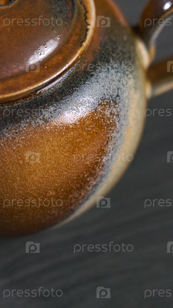 Это крупное изображение демонстрирует красиво выполненный чайник, подчеркивая его уникальную глазуру и потрясающие цветовые вариации