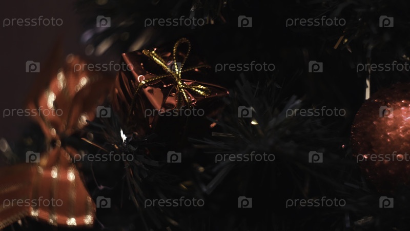 Идея красивых красных рождественских украшений, висящих на шерстяной елке и красные шары