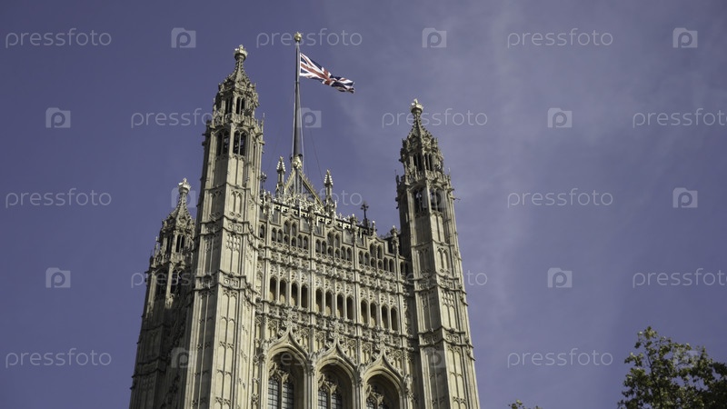 Красивое старое архитектурное здание в Европе на синем фоне. продолжайте. красивая и сложная архитектура высокого европейского здания с готическими деталями